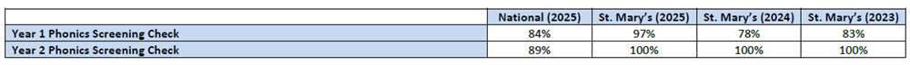 96%: the percentage of pupils who achieved the expected standard in reading                                    (England average: 75%)