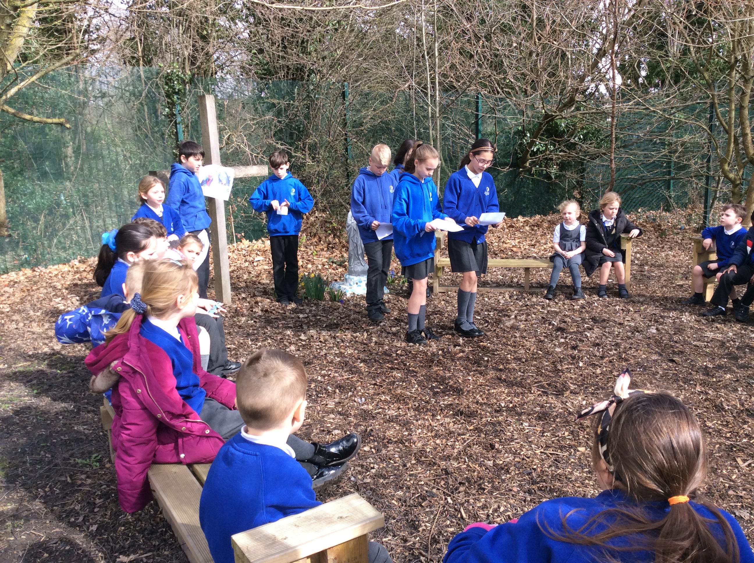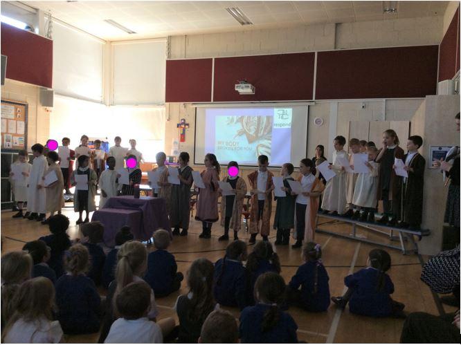 As well as regular, weekly Collective Worship, we hold celebrations in line with the church liturgical year including Easter Rocks!, Mary devotion, class Saints' feast days, Blessed Virgin Mary feast day, Advent and Lent services, Christingle, Candlemas, Advent wreaths blessing, Remembrance and Holy Week services.