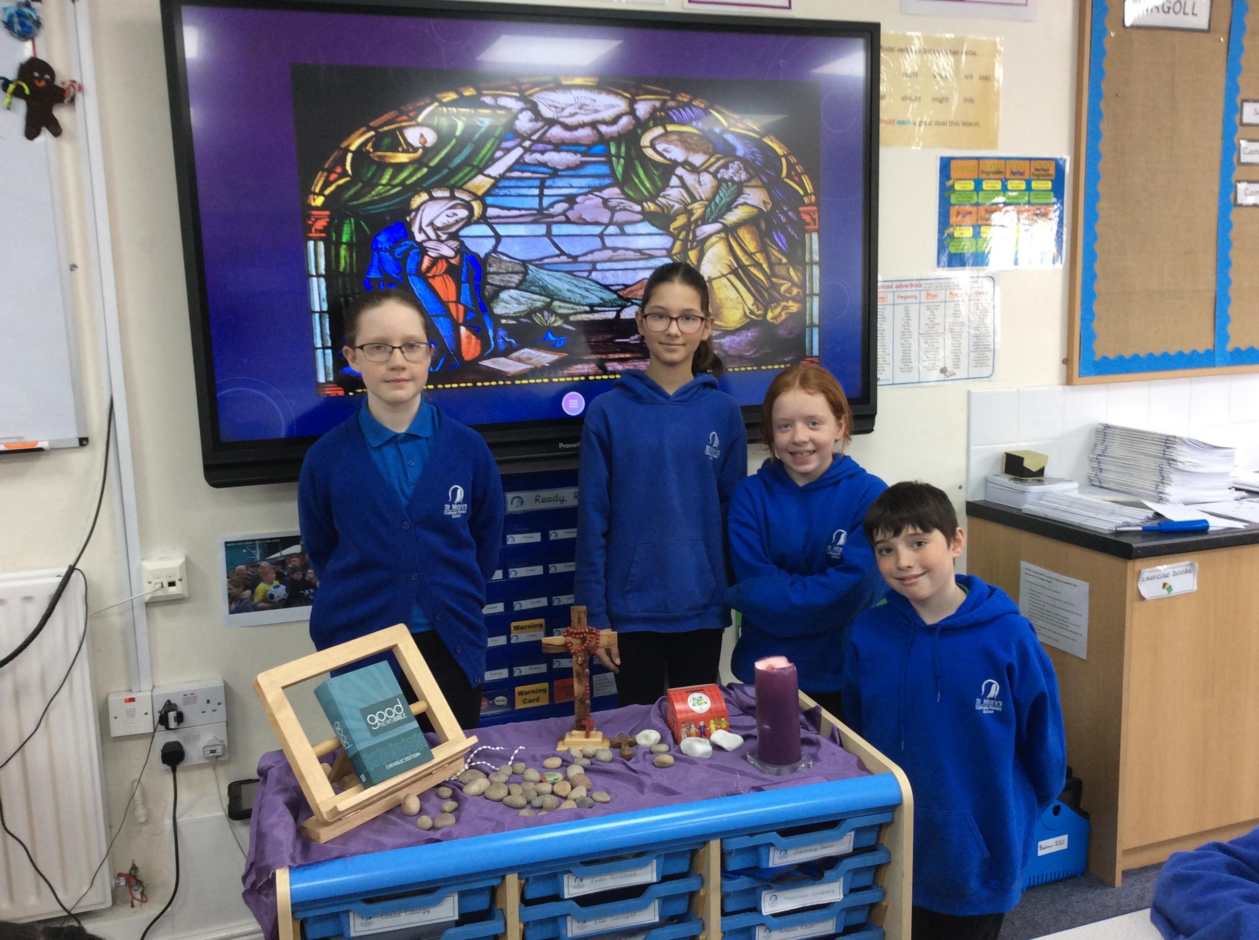 Celebration of the Word (collective worship) is an integral part of school life at St Mary's and is central to the Catholic tradition. It provides opportunities for our community to contemplate the mystery of God, reflect on spiritual and moral issues, experience a sense of belonging and grow in liturgical understanding.